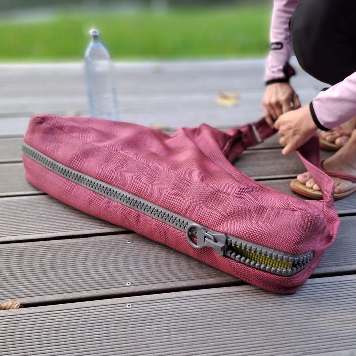 Wir machen seit Jahren wöchentlich Yoga. Um Matte, Handtuch, Trinkflasche und weitere kleinere Accessoires mit uns zu führen, hatten wir immer getrennten Behältnisse. Meist die Matte zusammengebunden mit zwei Stripes und einen zusätzlichen kleinen Rucksack für die anderen Dinge. Die Matte war einfach zu groß um sie in unsere Lieblingstasche hinein zu bekommen. So waren es immer 2 Gepäckstücke. Bald kam der Wunsch nach einer Tasche für alles in einer auf.