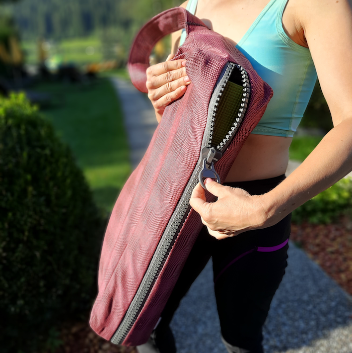Wir machen seit Jahren wöchentlich Yoga. Um Matte, Handtuch, Trinkflasche und weitere kleinere Accessoires mit uns zu führen, hatten wir immer getrennten Behältnisse. Meist die Matte zusammengebunden mit zwei Stripes und einen zusätzlichen kleinen Rucksack für die anderen Dinge. Die Matte war einfach zu groß um sie in unsere Lieblingstasche hinein zu bekommen. So waren es immer 2 Gepäckstücke. Bald kam der Wunsch nach einer Tasche für alles in einer auf.
